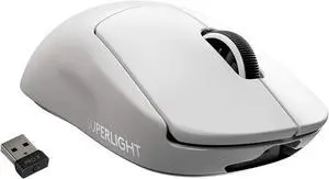 G PRO X SUPERLIGHT Wireless Gaming Mouse, Ultra-Lightweight, HERO 25K Sensor, 25,600 DPI, 5 Programmable Buttons, Long Battery Life, Compatible with PC / Mac - White