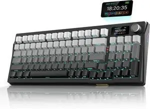 RedThunder K95 Wireless Mechanical Keyboard,TFT Screen & Knob, Tri-Mode BT5.0/2.4GHz/USB-C Hot Swappable Custom, Pre-lubed Linear Switches,Gasket Structure, RGB Gaming Keyboard for WIN/IOS, Black-Gold