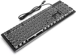 USB LED Backlit Retro Typewriter Mechanical Keyboard -Blue Switch - Round Keycaps -104 Keys Vintage Inspired Steampunk Gaming Keyboard–Mechanical Gaming Keyboard for PC/Mac/Gamer/Typ (White)