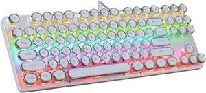 Retro Typewriter Keyboard, 86 Keys Vintage Keyboard, Typewriter Style Retro Mechanical Gaming Keyboard BT5.0 with Integrated Stand, for Wins for Android for iOS (White)