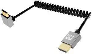 Right Angled HDMI 2.1 Male to HDMI Male Stretch Coiled Cable 90 Degree 8K 60hz 100cm for Monitor HDTV Computer Laptop
