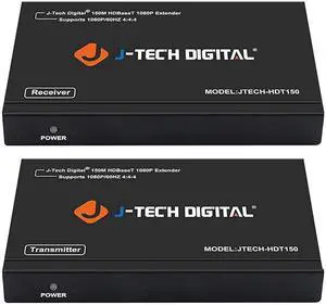J-Tech Digital Long Range HDMI Extender Over Cat6 150m/492ft HDBaseT 1080P Extender PoC, Bi-Directional IR, Supports Dolby Digital, DTS, with EDID, CEC, & RS-232 Passthrough (JTECH-HDT150)