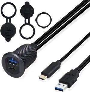 Metal Shell USB 3.0 Port & USB Type C Port Mount with Light, 3.3ft USB 3.0 & USB 3.1 Male to Female Flush Panel Dashboard Mount Extension Cable for Car Truck Boat Motorcycle (Gray & 3.3ft)