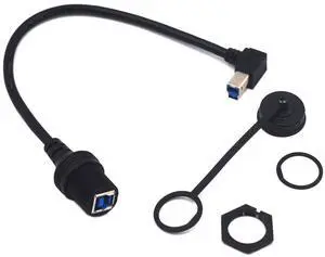 0.3 Meter USB Type B 3.0 Mount Cable, 90 Degree Right Angle USB B Male to Female Flush Panel Mount Extension Cord for Car Truck Boat Motorcycle Dashboard (USB B 3.0 - R)