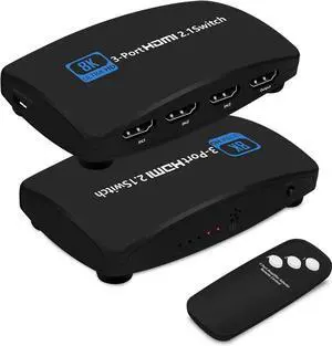 HDMI Switch 8k Ultra HD 3 in 1 Out, with IR Romote Control, 48Gbps High-Speed HDMI 2.1 Switcher, Support 8K@60Hz, 4K@120Hz, 1080P@240Hz, Compatible with Xbox X, PS5, TV, Monitors