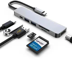BUCIER USB C Docking Station, HDMI to USB C Adapter for Monitor, USB-C Hub HDMI Dongle for Laptop, Micro SD Card Reader USB C Dock for Chromebook, USB C to USB Adapter Multiport for MacBook pro