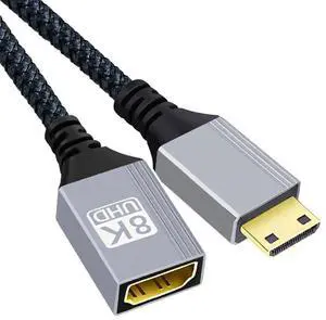 8K Micro HDMI 2.1 Type-D Male Left Angled 90 Degree to HDMI Female Extension HDTV Cable for Monitor DV Camera Laptop Portable 17cm