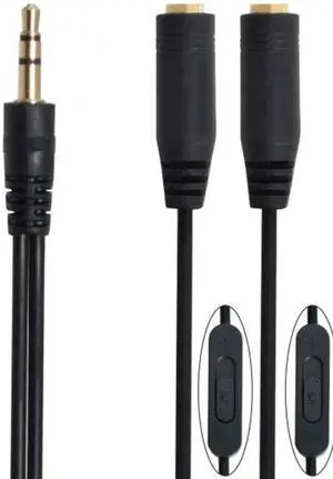 Black 3.5mm Stereo Male to Double 3.5mm Female Audio Headphone Y Splitter Cable with Volume Switch