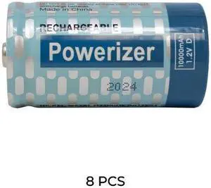 8-Pack D Powerizer 10000mAh NiMH Batteries