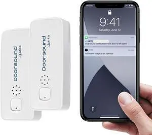 Doorsound - Freezer Refrigerator Door Alarm with Text Messages, Phone Notifications, Adjustable time delay and Volume, Chime, Door Left Open Alarm | no hub | no Subscription (2-Pack, White)