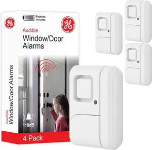 GE Personal Security Window/Door, 4-Pack, DIY Protection, Burglar Alert, Wireless, Chime/Alarm, Easy Installation, Ideal for Home, Garage, Apartment, Dorm, RV and Office, 45174, White