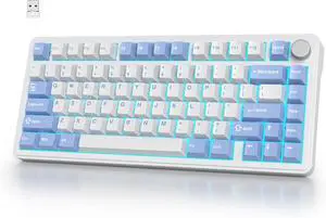 SbocKeeb 75 Percent Mechanical Keyboard with Knob,Triple Mode BT5.0/2.4G/USB-C,Gasket Structure,Hot Swappable,RGB Backlit,Compact 82 Keys Wireless Thocky Creamy Keyboard with White Switch(Starlight)