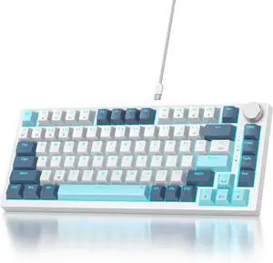 AK871 75% Wireless Mechanical Keyboard, Bluetooth/2.4G Dual Mode, 87 Keys Compact TKL Hot Swappable Gaming Keyboard, OEM Keycaps Linear Red Switch Custom Keyboard for PC Windows Mac (Blue & White)