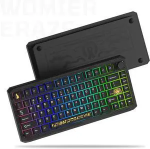 Womier ERA75 75% Wireless Keyboard with Knob Full Aluminum, VIA/QMK Custom Mechanical Keyboard, Pre-lubed POM Switches RGB Creamy Gaming Key Board, 3-Mode Gasket Hot Swappable, Black