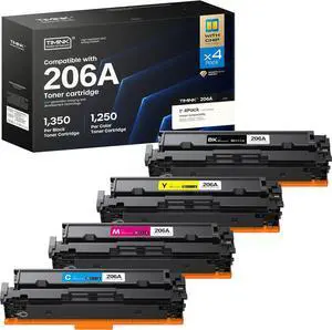 206A Toner Cartridges 4 Pack (with Chip) | Replacement for HP 206A 206X 206 W2110A W2111A W2112A W2113A | Pro M255dw M255nw MFP M282nw M283 M282 M255 Printer