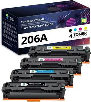206A Toner Cartridges 4 Pack (with Chip) Replacement for HP W2110A 206X 206A Toner Cartridges for HP Color LaserJet Pro M255dw M255nw Color LaserJet Pro MFP M282nw M283cdw M283fdn M283fdw Pinters
