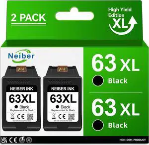 63XL Black Ink Cartridges Remanufactured 63XL Black Ink Cartridges Ink 63 63XL Works with Envy 4520 4512 OfficeJet 3830 3833 4650 4655 5255 5258 DeskJet 1112 2130 3630 3633 (2 Black)