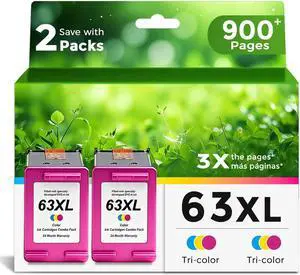 63XL Ink Cartridges Replacement for HP 63 XL (Color 2-Pack) Work with HP63 3830 4650 4652 4655 5200 5252 5255 5258 4520 4512 1112 2132 3630 3632 4511 4510 3833 3634 2130 Printers 2 Tricolor