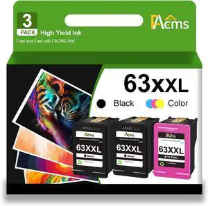 3Pack Remanufactured Ink Cartridge 63XL XXL Compatible with HP 63 OfficeJet 3830 5255 5258 Envy 4520 4512 4513 4516 DeskJet 1112 1110 3630 3632 3634 2130 2132 Printer, 2 Black, 1 Tri-Color