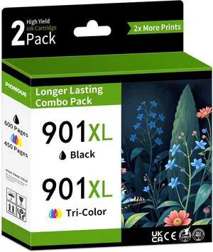 901XL Ink Cartridges High Yield Combo Pack Replacement for HP 901 XL 901 Ink Works for Officejet 4500 J4524 J4540 J4550 J4580 J4624 J4680 Printer (2-Pack, Black/Color)