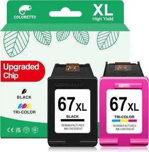 COLORETTO 67XL Ink Cartridges Replacement for Deskjet 2800e 2827e 2842e 2852e 2855 2855e 2700 2700e 2710e 2720e 4200 4200e 4227e 4252e Printers for HP67 HP 67 Black and Color Combo Pack