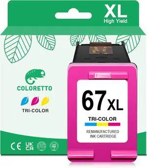 COLORETTO 67XL Color Ink Cartridge Replacement for HP 67 Color Ink Cartridge for DeskJet 2855e 2852e 2842e 2755e 2752e 2742e 2724e 4255e Envy 6000 6052 6065e 6452e 6455e for HP Ink 67 XL Tri-Color
