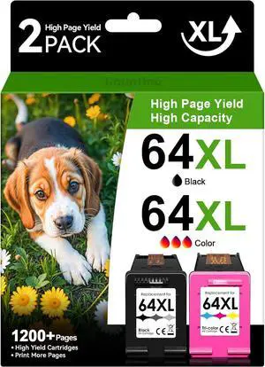 High Yield for HP 64XL Ink Cartridges Combo Pack Replacement for HP Ink 64 64XL for HP Envy Photo 7855 7858 7155 7800 7100 7164 7158 6252 Envy 7255e Inspire 7950e Tango X Printer(1 Black,1 Color)