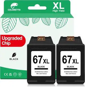 COLORETTO 67XL Ink Cartridge Black for HP 67 XL Deskjet 2800e 2820e 2821e 2822e 2700 2700e 2710 2710e 2720 4220e 4222e 4200e 4210e 4100 Printers for HP 67 Black HP 67XL Printer Ink Black (2 Pack)
