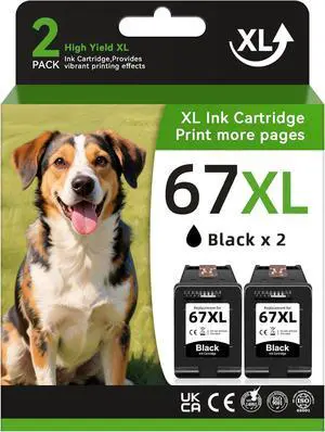XXL 67 Ink Cartridge Black Replacement for HP 67XXL 67XL 67 Ink Cartridge Work with DeskJet 2700 2755e 4155e 4100 Series Envy 6000 6400 6055e Series Printer (2 Black)