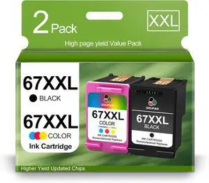 XXL 67 Ink Cartridge Combo Pack Replacement for HP 67XXL 67XL Ink Cartridge Work with DeskJet 2700 2755e 4155e 4100 Series Envy 6000 6400 6055e Series Printer (1 Black + 1 Color)