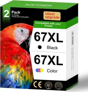 67XL Ink Cartridges Black/Color Combo Pack Replacement Ink 67 HP 67XL DeskJet 2700 2700e 2755e 2755 4155e 4155 Envy 6055e 6455e 6400 6055 6075 Envy Pro 6452 6458 6475 Printer (2 Pack)