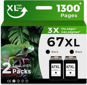 67XL Black Ink Cartridge Replacement 67XL 67 XL for Deskjet 2723e 2724 2725 2732 2742e 2752e 2755 4130e 4133e 4155e 4158e Envy 6032e 6034e 6050e 6432e 6452e 6455e (2 Black)