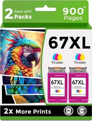 67XL Ink Cartridges Black/Color Combo Pack 67XL 67 XL for Deskjet 2723e 2724 2725 2732 2742e 2752e 2755 4130e 4155e 4158e Envy 6032e 6034e 6050e 6432e 6452e 6455e (2 Pack)