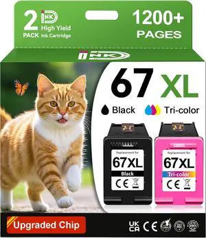 67XL Ink Cartridges Black/Color Combo Pack Compatible for HP Ink 67 67XL Works with HP Deskjet 2700 2700e 2755 2755e 2855e 2800e 2852e 2827e 4100e 4155e 4227e 4255e Envy 6055e 6455e Series (2-Pack)
