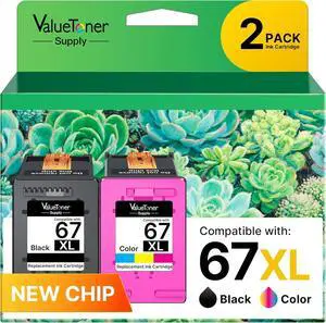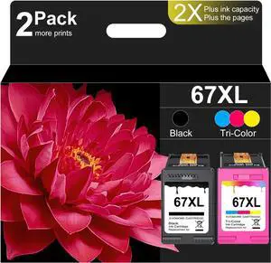67XL Cartridges Black/Color Combo Pack for HP Ink 67 67XL for Printers Deskjet 2700e 2755e 2732 2752 Deskjet 4155 4155e Envy 6055 6055e 6052 6058 Envy Pro 6400 6455 6455e 6458, 2 Pack