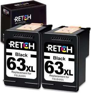 RETCH Remanufactured Ink Cartridges Replacement for HP 63XL F6U63AN for Envy 4520 4516 Officejet 5255 5258 5220 3830 4650 3831 3833 4655 DeskJet 1112 3630 3632 3633 3634 2130 2132 Printer