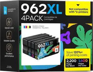 962xl 962 Ink Cartridges for HP OfficeJet Pro 9015 9018 9010 9020 Series Printer, 962 XL High Yield Ink Cartridge Combo Pack 4 Pack, No e Series Printer (Black, Cyan, Magenta, Yellow)