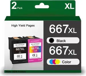 667XL Black and Color Replacement for HP 667 XL 667 Ink Cartridges for Deskjet Ink Advantage 1275 2375 2775, Deskjet Ink Advantage Plus 6075 6475 6476 (2 Pack)