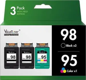 Valuetoner Remanufactured Ink Cartridge Replacement for HP 98 C9364WN & 95 C8766WN for Officejet 150 100 6310, PhotoSmart 8050 C4180 C4150, Deskjet 460 5940 Printer (2 Black, 1 Tri-Color, 3 Pack)