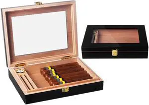 Cigar Humidor Box with Glass Top and Humidifier Cigar Storage Box Case Decorative Box