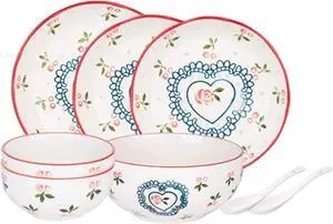 Reusable Dinner Plates 8 Piece Kitchen Dinnerware Set, Service of 2, Cherry Pattern Dinner Plate Set Cute Ceramic Plate Set, Microwav