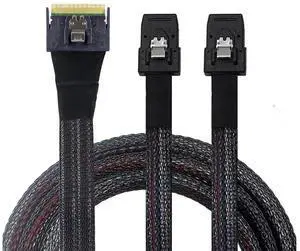Mini SAS HD 8643 4i to Dual SAS 8639 with SATA 15-Pin Cable 12Gbps High-Speed Server Interconnect, 32AWG Copper Wire (1m)