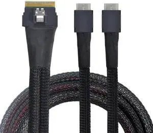 SFF-8611 8X to Dual SFF-8639 U.2 Cable with 15-Pin SATA Power, 32AWG Copper High-Speed Harness, 12Gbps Data Transfer (1m/39.37in)