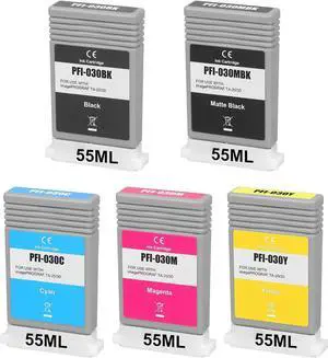 PFI-030 PFI030 Pigment Ink Tank Kit Replacement for Canon PFI-030 Ink Cartridges PFI-030MKB PFI-030BK PFI-030C PFI-030M PFI-030Y Compatible for Canon ImagePrograf TA-20 TA-30 Printer