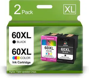 60XL Ink Cartridges Black and Color Combo Pack Replacement for HP 60 60 XL Ink Work for PhotoSmart C4780 C4680 C4795 C4650 DeskJet F4480 F4440 F4280 Envy 110 Printer (2 Packs)
