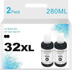 Ankink 31 32XL Ink Refill Bottle Set Replacement for HP 32 XL Compatible for HP Smart Tank 5000 5101 6001 7301 7602,Plus 651 551 555 450 455 457,Ink Tank 310 319 Printer(2 Black Pack)