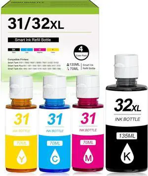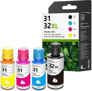 Jeoskarky Compatible for HP 31xl Color HP 32xl Black Ink Bottle for HP Smart Tank 7602 6001 5101 7301 6000 5102 5000 5103 7002 7001 7302 Series for Smart Tank Plus 651 551 Printers (4 Bottles)