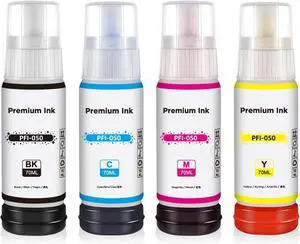 PFI-050 PFI050 Ink Tank Cartridge Compatible for PFI-050BK PFI-050C PFI-050M PFI-050Y Pigment Ink Bottle for Canon imagePROGRAF TC-20 TC-20M Printer (70ML, 4 Pack)
