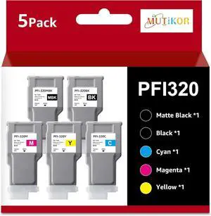 Compatible PFI-320 Ink Tank Pigment Replacement for Can PFI320MBK PFI320BK PFI320C PFI320M PFI320Y Ink Cartridge for imagePROGRAF TM-200 TM-205 TM-300 TM-305 Printers (5-Pack, MBK/BK/C/M/Y)