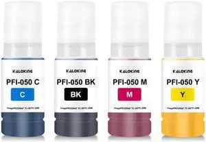 KALOKING PFI-050 Ink Bottles Set Compatible with Canon PFI050 PFI-050BK PFI-050C PFI-050M PFI-050Y Ink Refill for imagePROGRAF TC-20 TC-20M Printer (4 Pack, BK C M Y)